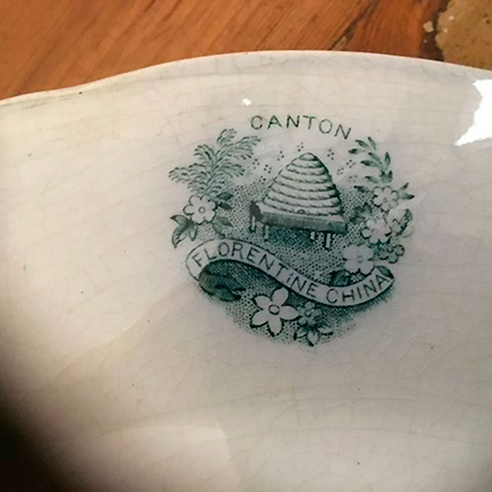 Oprindelse: Stemplet Canton Florentine China. Porcelain Opaque Fell & Co. England.