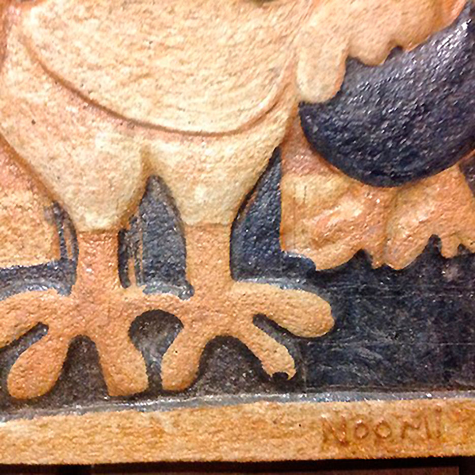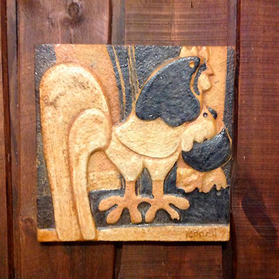 Søholm, relief med hane i stentøj. Design Noomi Backhausen. Det herlige relief