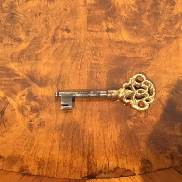 Materiale: Nøddetræ og broncebeslag.
