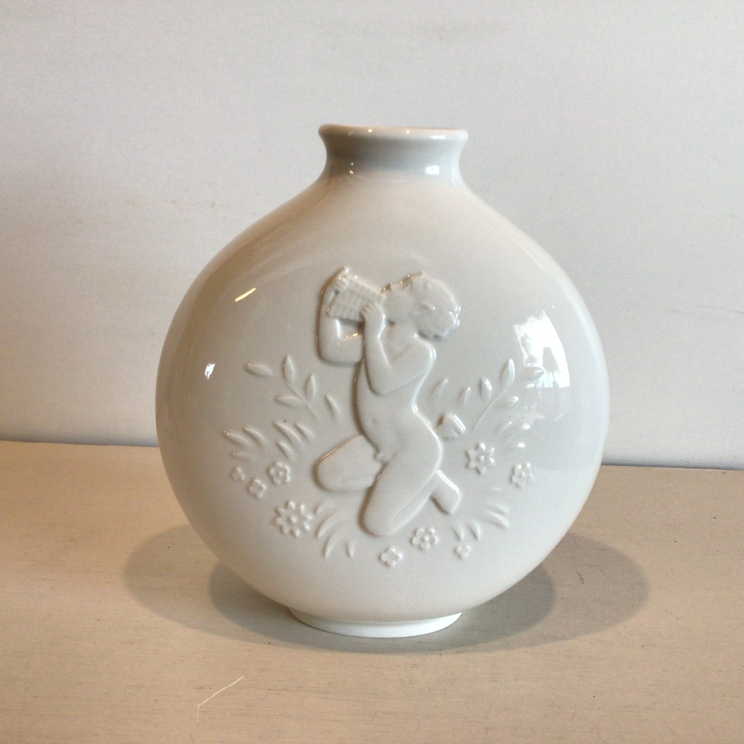 porcelæns vase i Blanc de Chine er dekoreret med nøgen kvinde