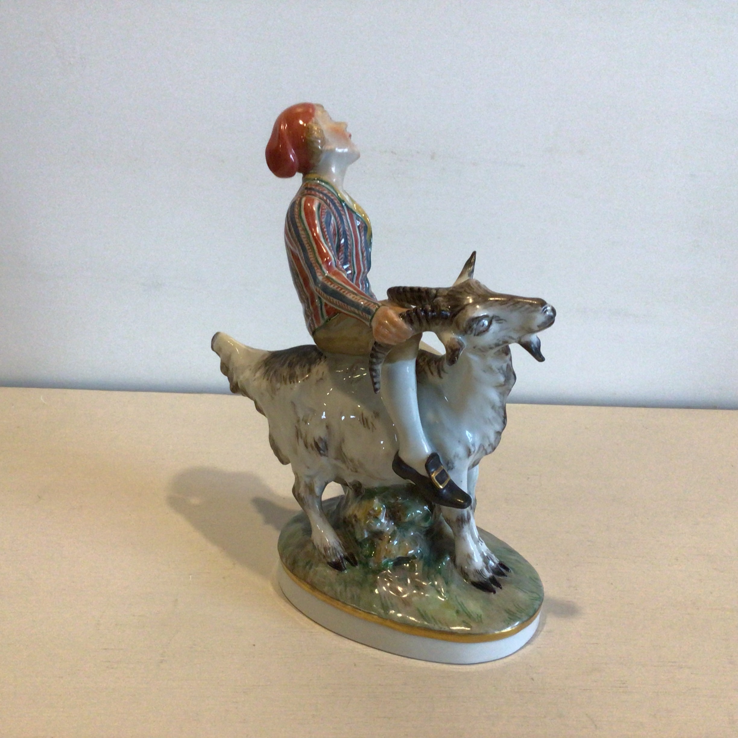 Figur i porcelæn af Klods Hans i overglasur fra
