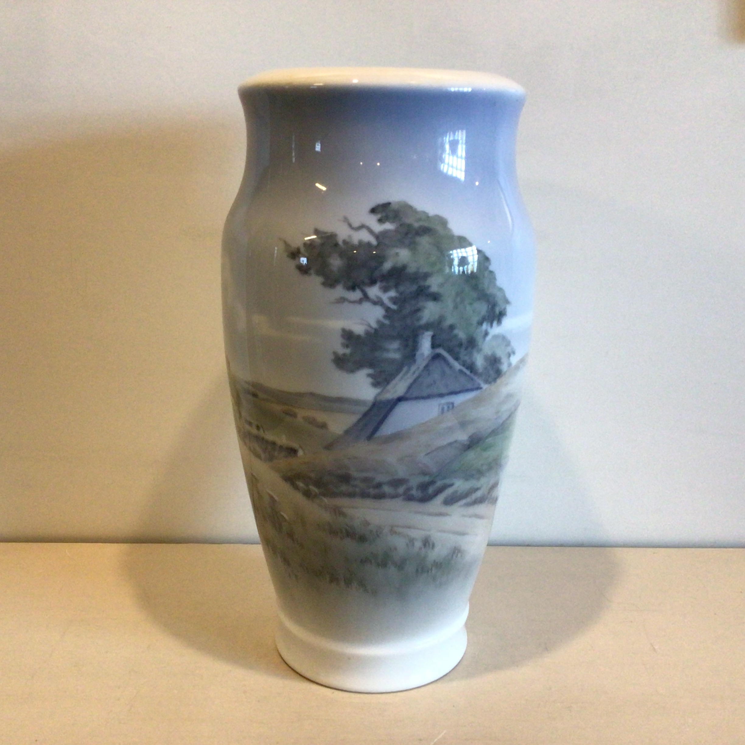 Nouveau vase er i Kongeligt håndmalet porcelæn med landskabs