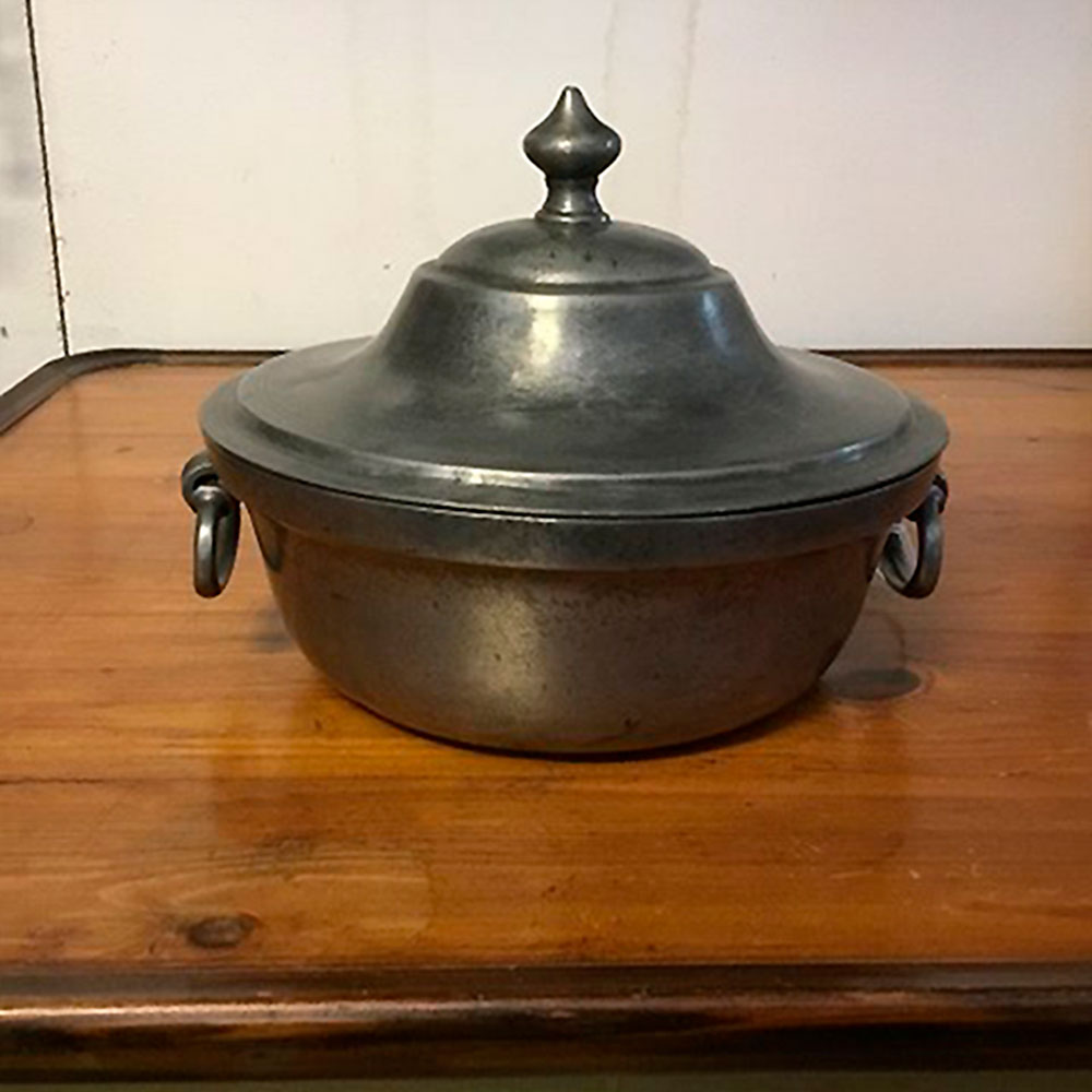 og øverst på det hvælvet låg en knop. Tinterrinen er i god stand.