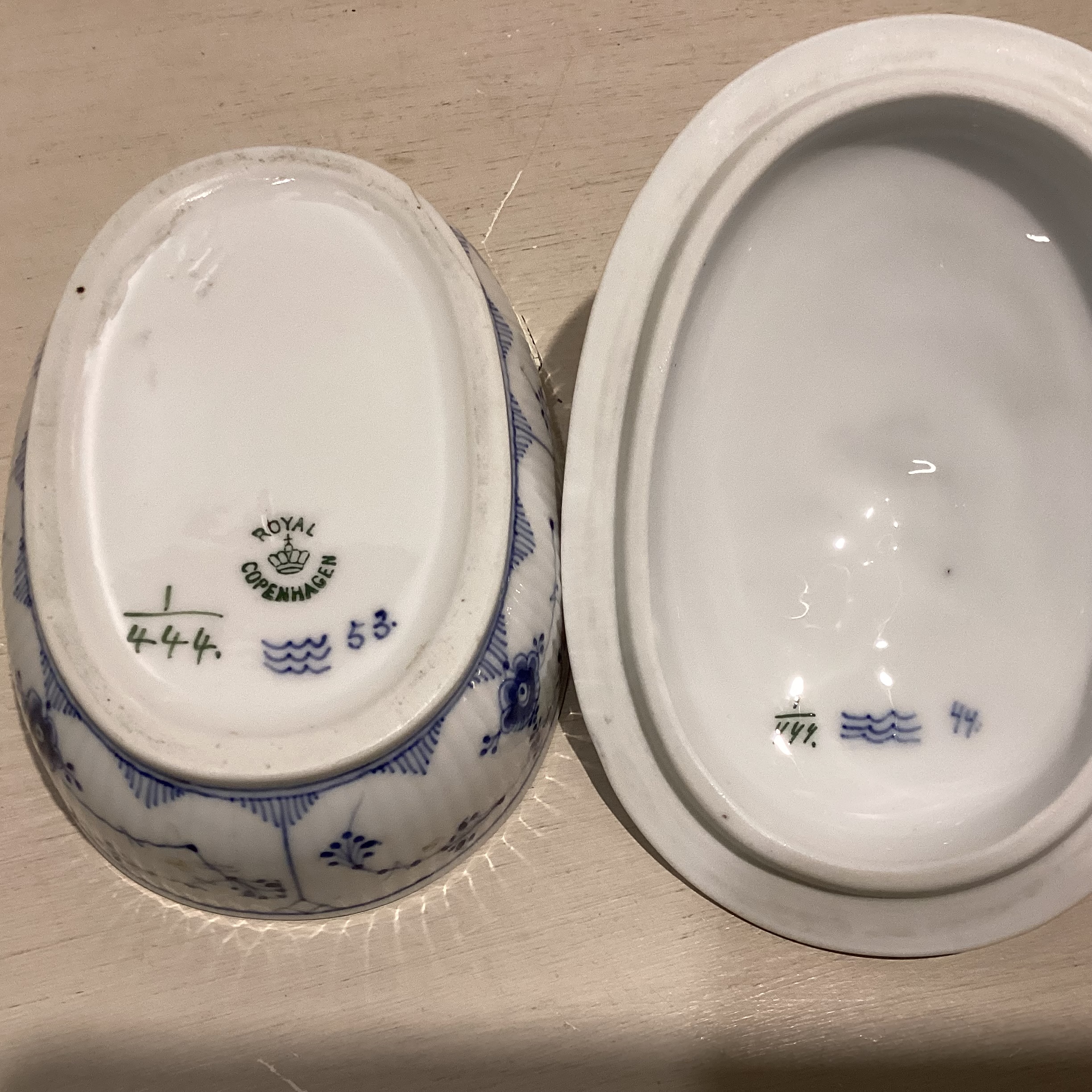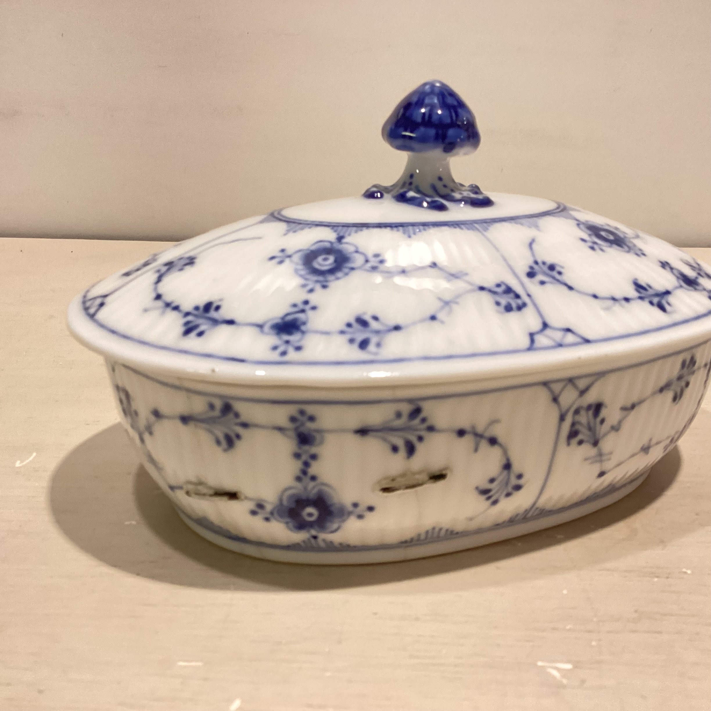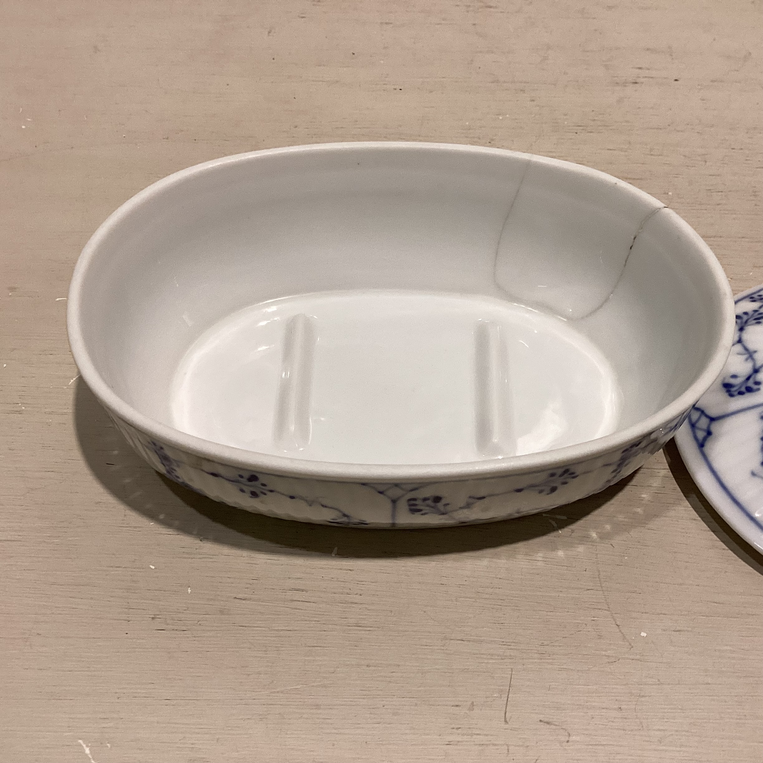 musselmalet sæbeskål med låg #1/444 i håndmalet riflet Kongeligt