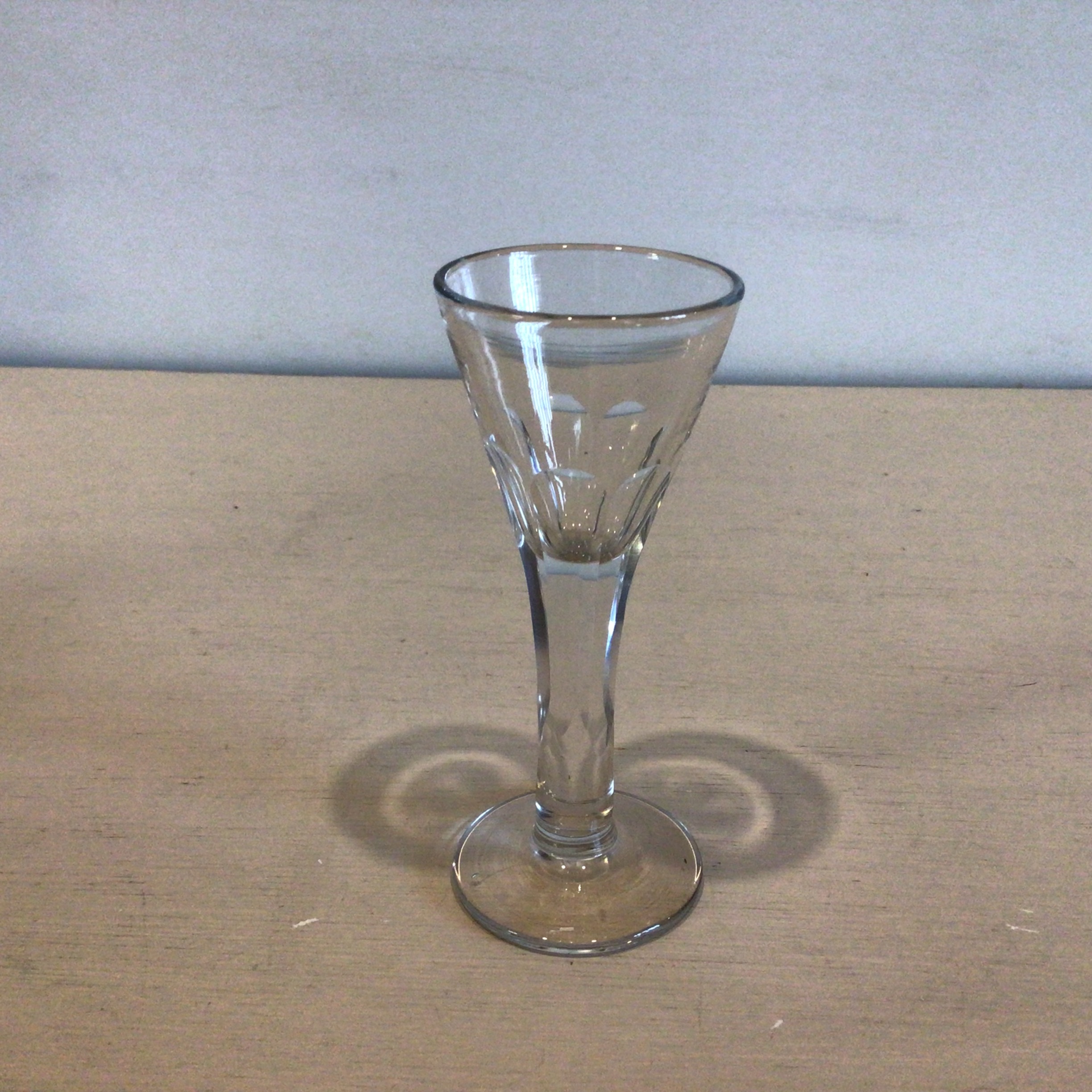 som spidsglas med facetter fra den øverste del af stilken