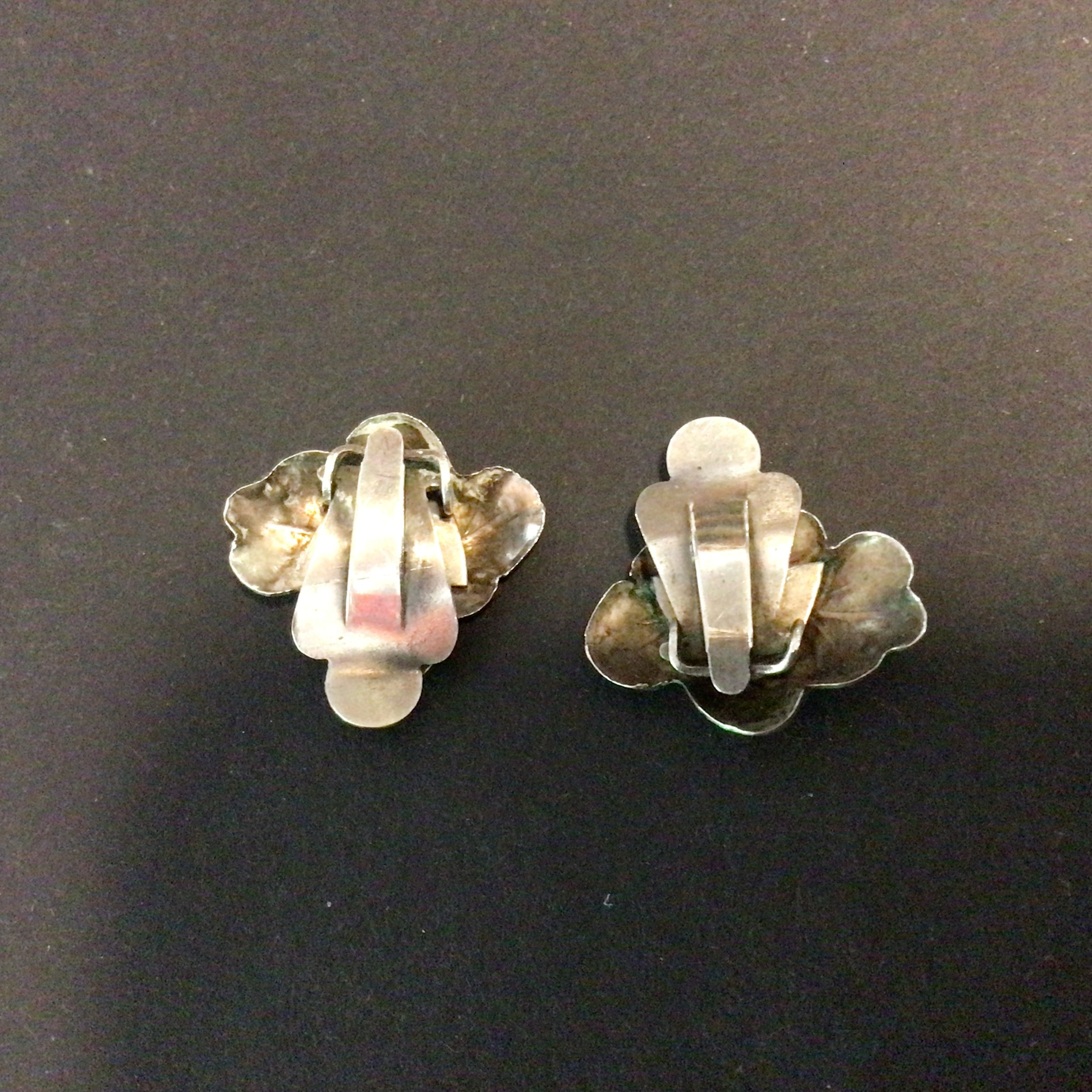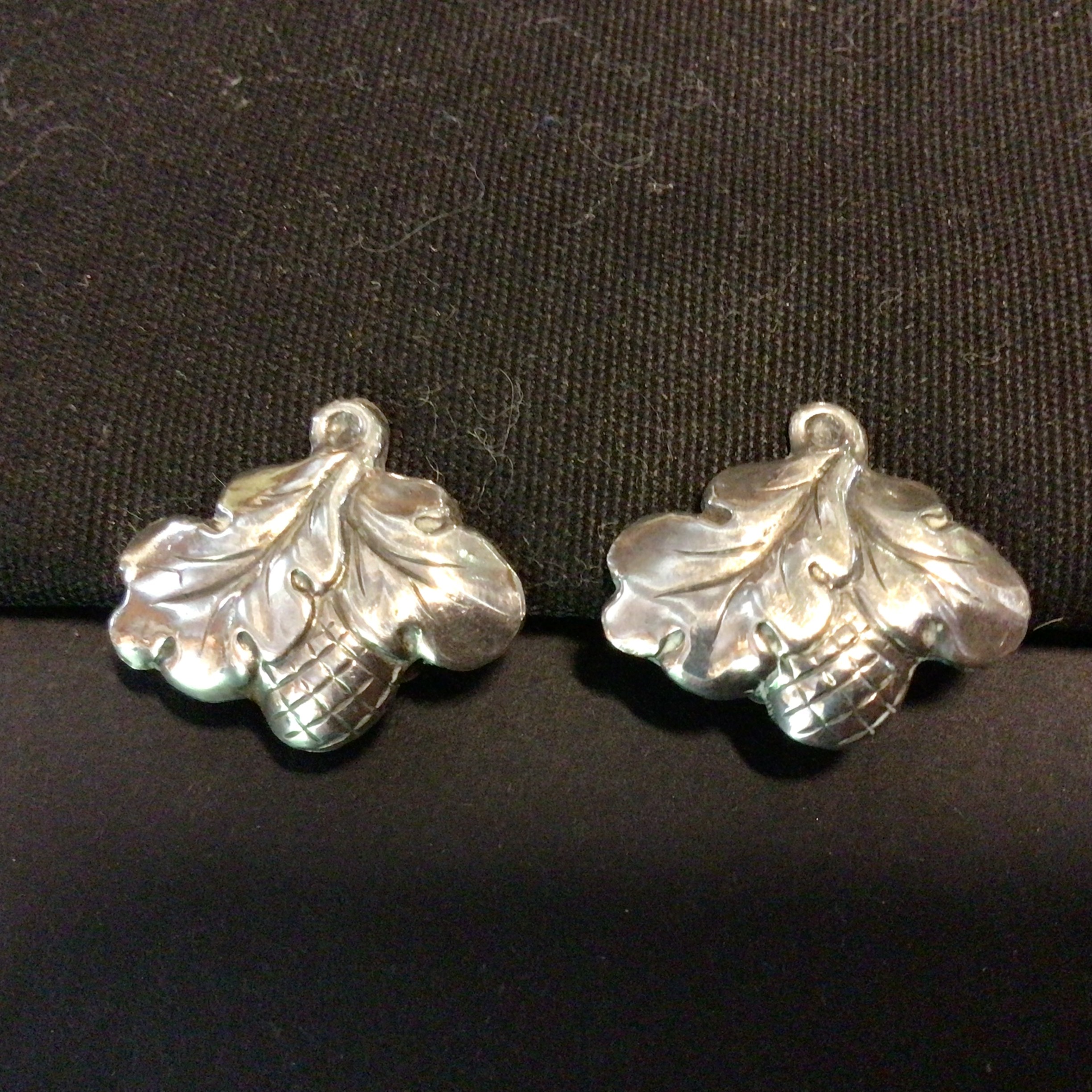 Vintage Sølv Øreclips i form af egeblade. Sølv øreclips har to