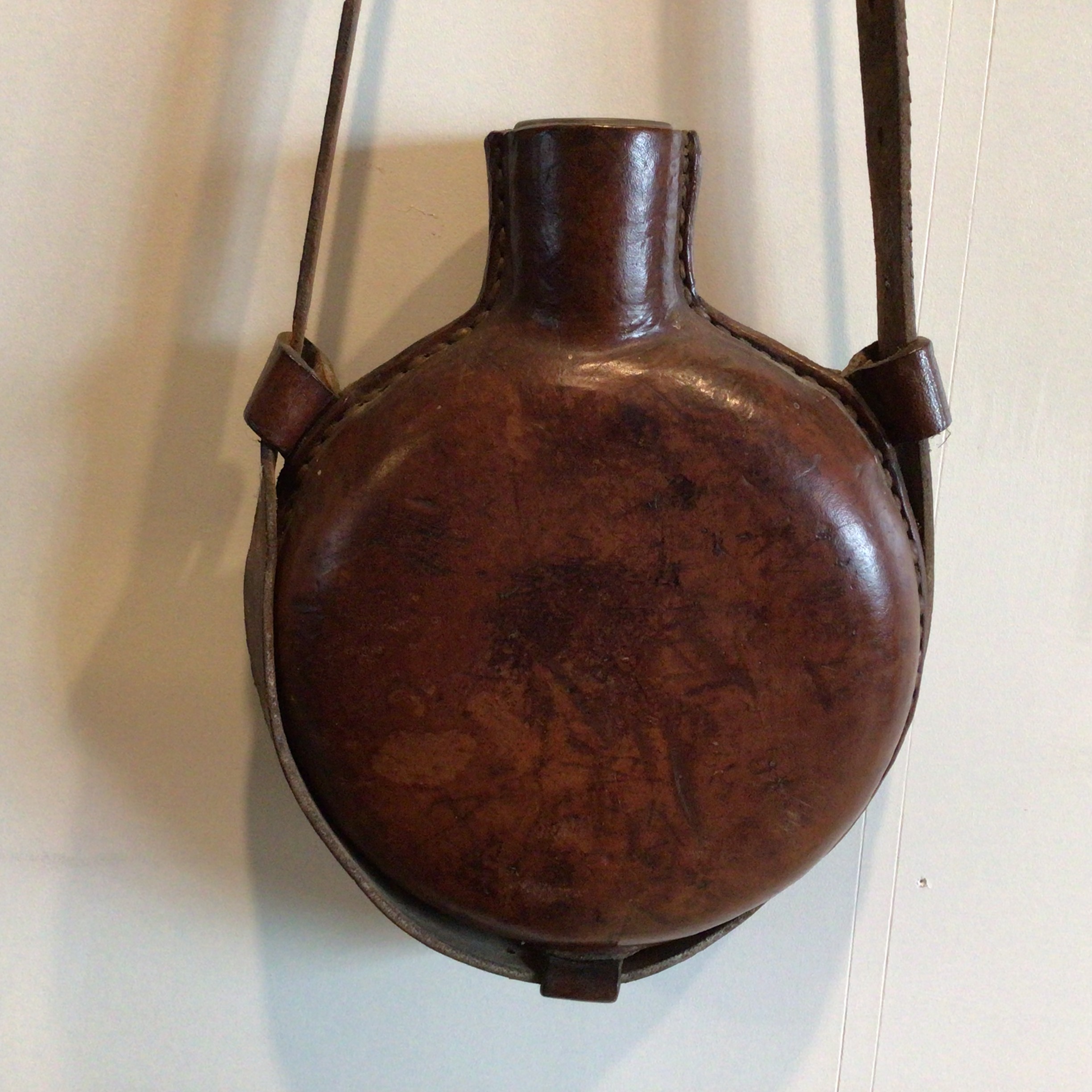 Soldater Feltflaske i læder med skulderhank.