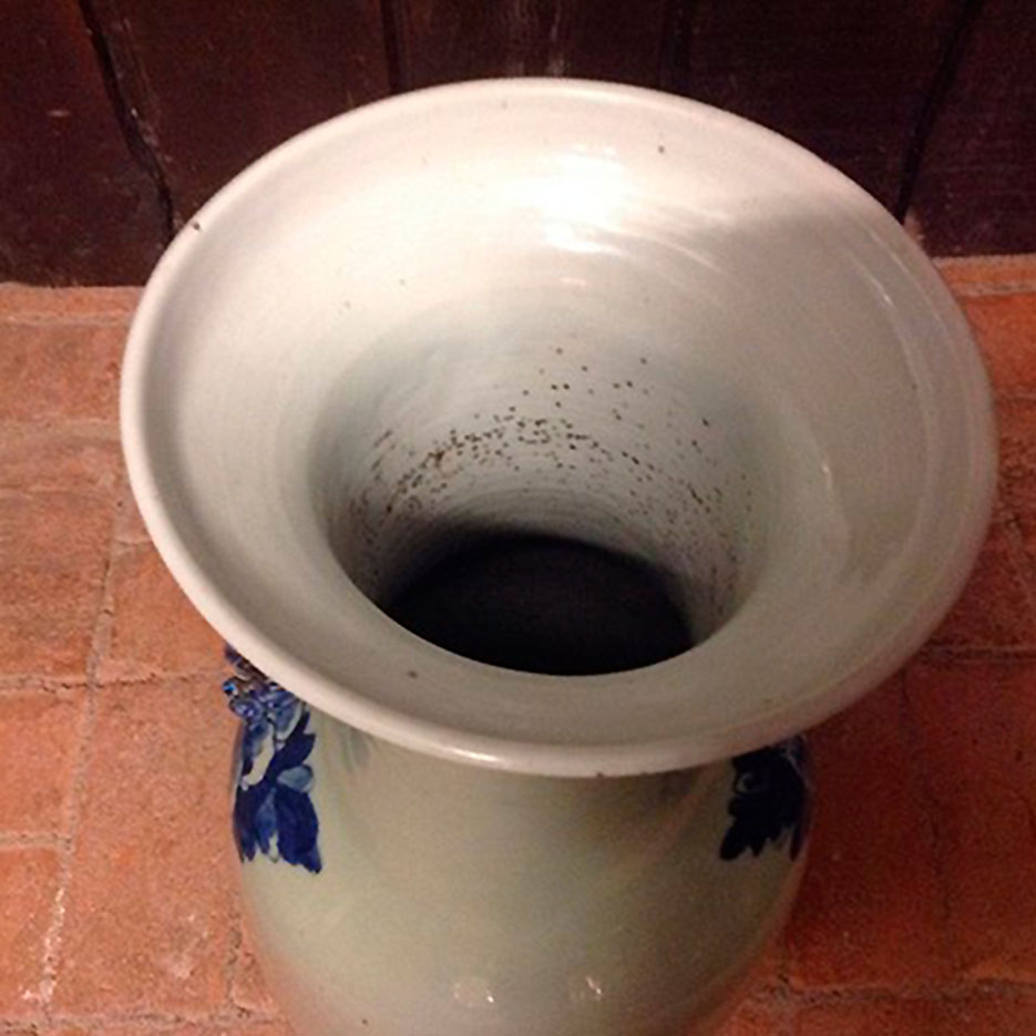 Den kinesiske blådekoreret vase har en stjerne i bunden (se foto) men ellers i rigtig fin stand.