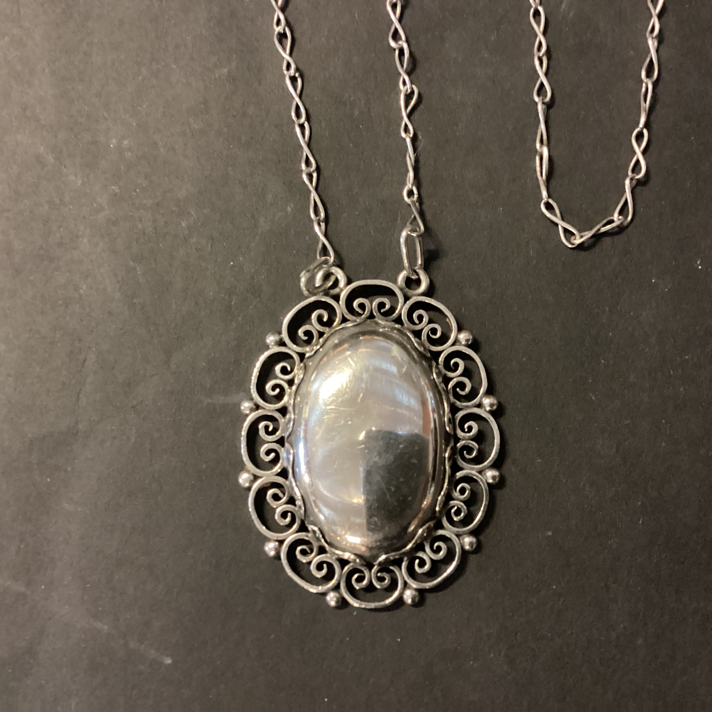Stort ovalt Halssmykke #33 i sølv. Stort ovalt halssmykke i sølv #33