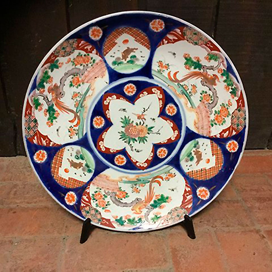 Stort rundt Japansk Imarifad. Det smukke Imarifad er i porcelæn. Dekoreret med blomster I