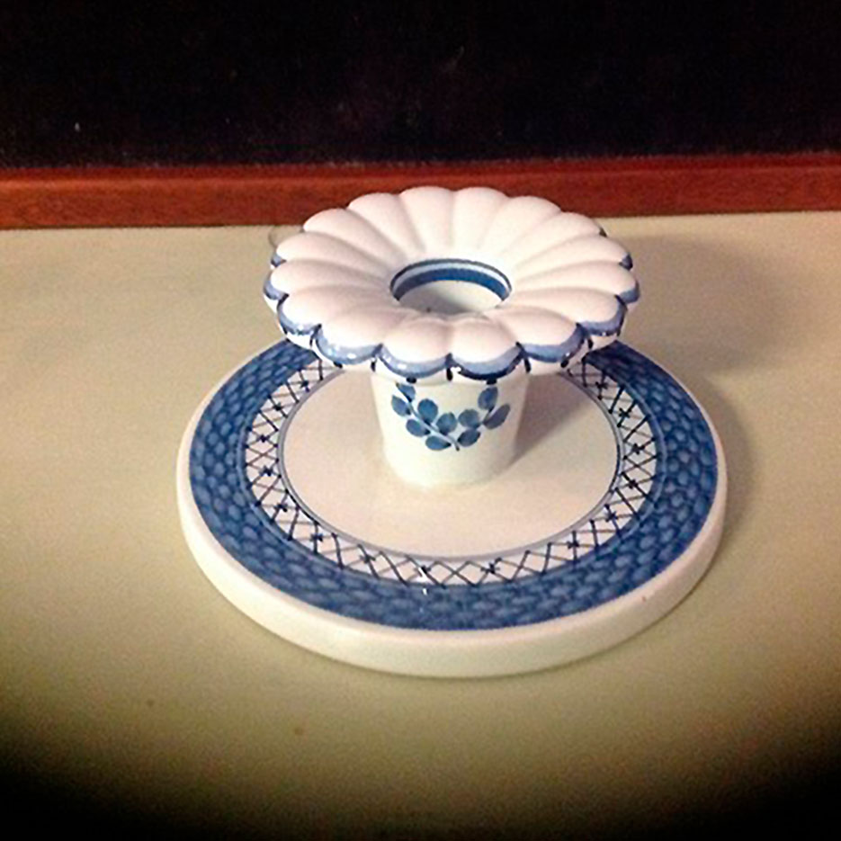 Tranquebar. Lav Trankebar lysestage #1796 i fajance fra Aluminia – Royal Copenhagen.