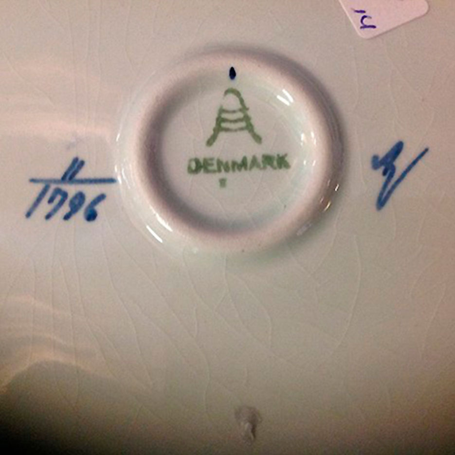 Oprindelse: Aluminia. Royal Copenhagen, Danmark.