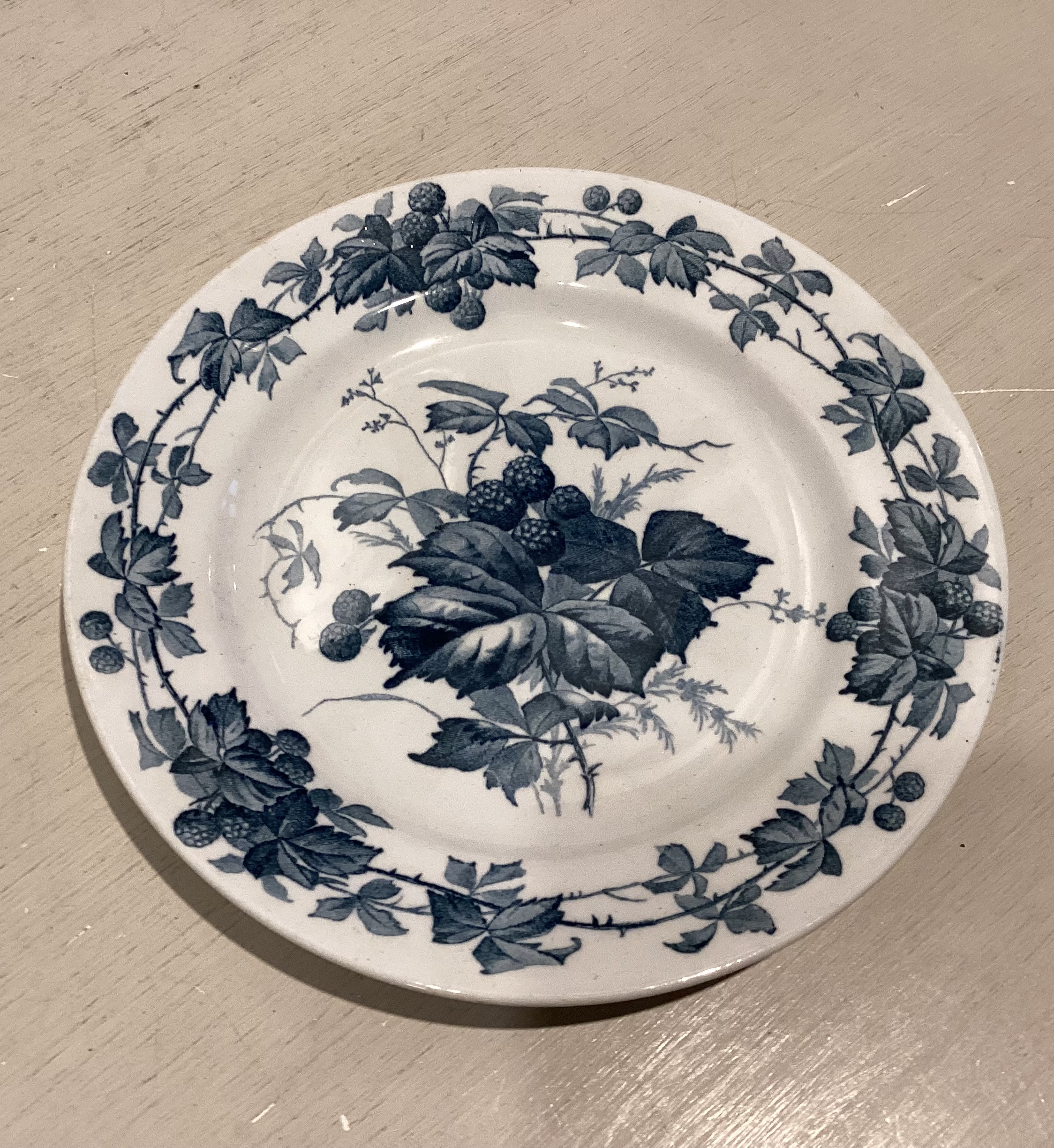 Brombeere sidetallerken i fajance prydet med brombær og
